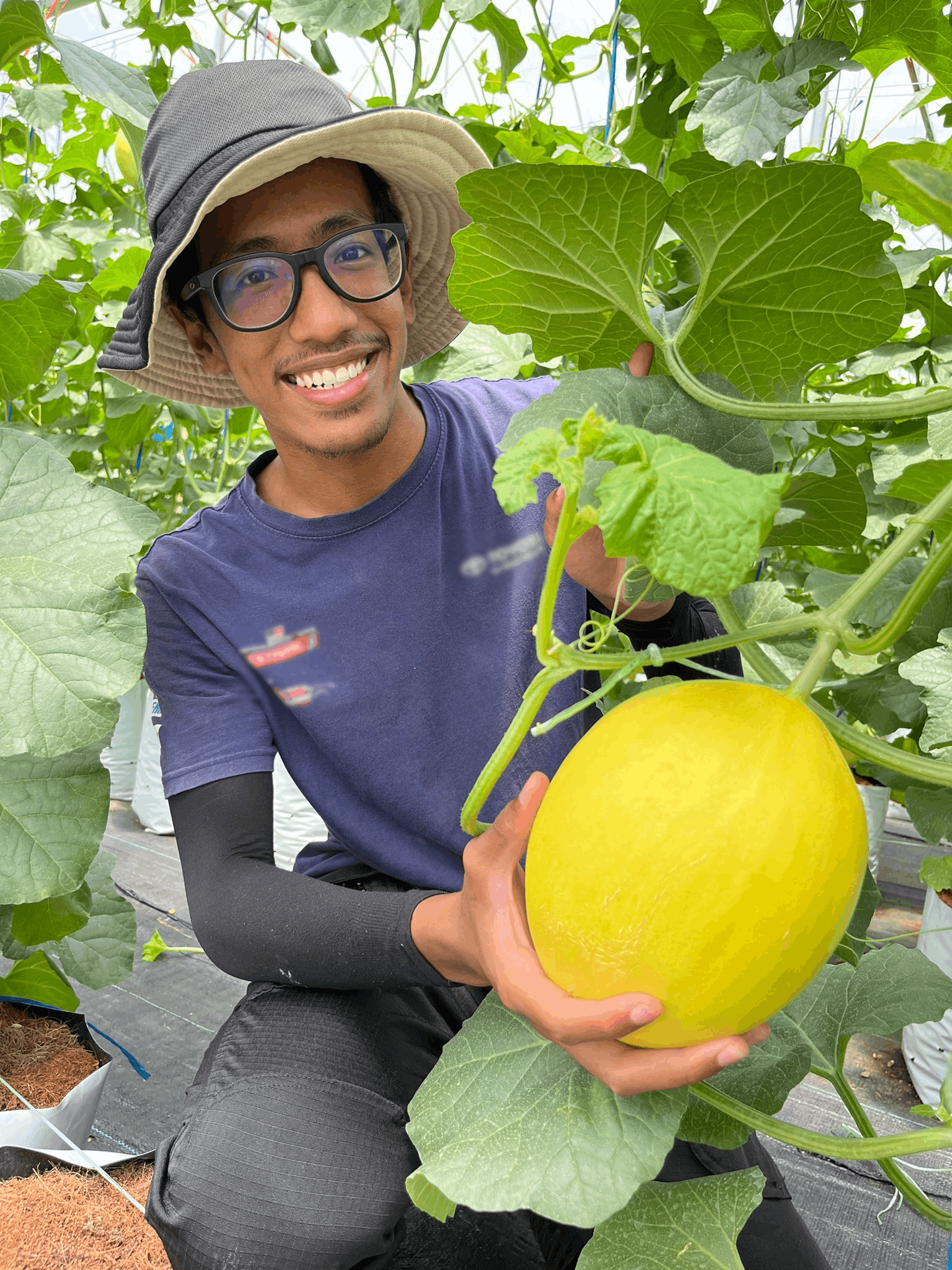 Naim Hakimi, a 24-year-old graduate in BSc (Hons) Agrotechnology, has a family in farming that got him interested to pursue further studies in crop sciences. He now produces F3 melons with pride and precision in a Fefifo Co-farm in Sungai Raya, Perak. His 1-acre greenhouse farm space is set up with a precision fertigation system and he operates Fefifo’s seed-to-sale digital platform (aka DDFN) on his mobile phone.
